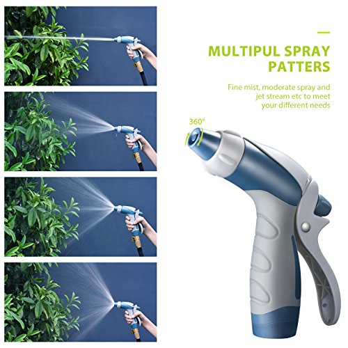 - MULTI SPRAY PATTERNS: From fine mist, moderate spray to powerful jet stream to meet your different needs. This high pressure hose nozzle is great for car washing, cleaning walkway, yard and gutters, and ideal for watering plants.