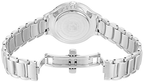 - White mother-of-pearl dial with silver-tone accents, numerals and indices