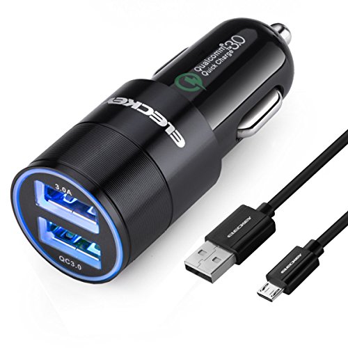 Eleckey Quick Charge 3.0 Rapid USB Car Charger with 3.3ft Micro USB Cable for Samsung Galaxy S7 Edge/S7/S6 Edge/S6+/S6/S5/Note Edge/5/4, Sony Xperia, Moto X - Black