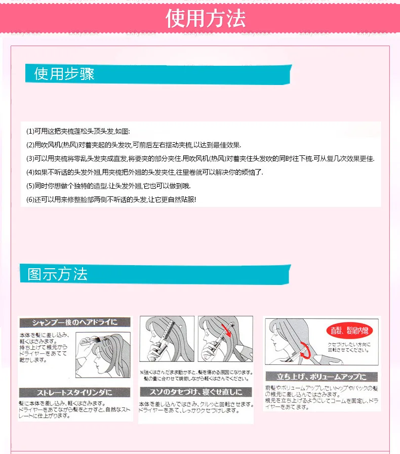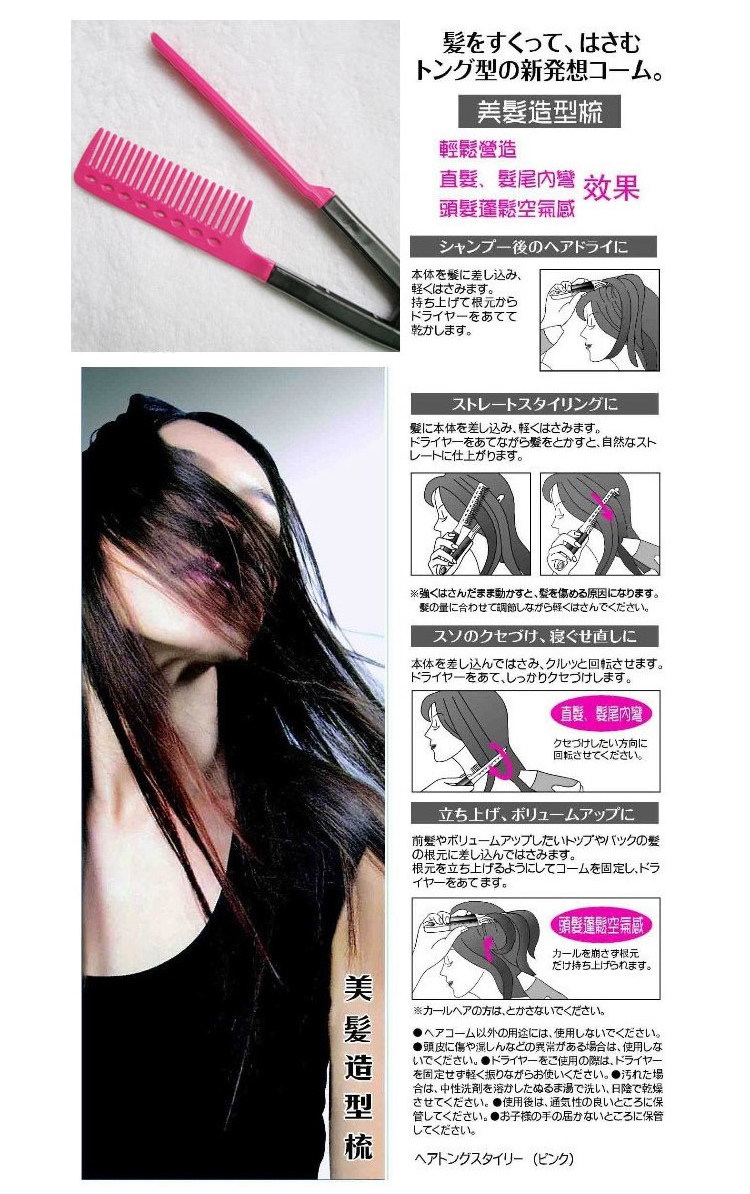 To Create Straight Hair: Insert the comb into the hair, gently nip, put up the hair, blow