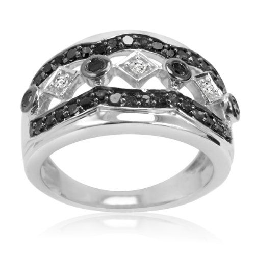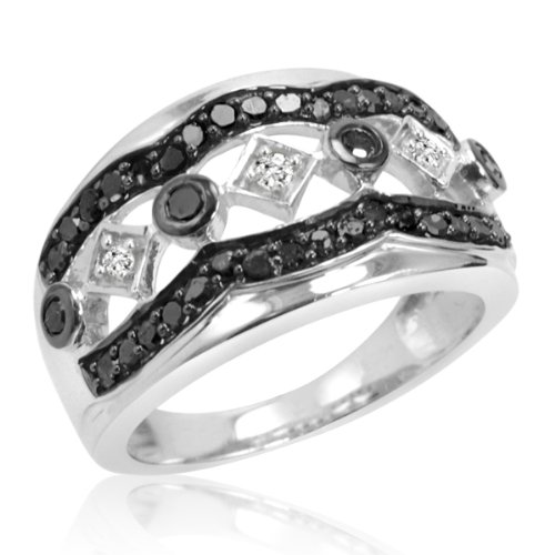 - Feature : Sterling Silver Settings / 1/2ct total weight of black and white diamonds / Choose your size 6-8 / Color/Clarity : J/K- I2-I3