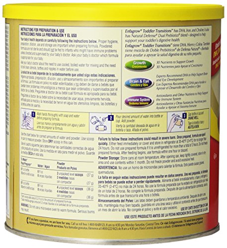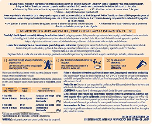 Enfagrow Toddler Transitions is an infant and toddler powder formula that has a Neuro Support blend of nutrients, such as DHA. Enfagrow Toddler Transitions helps nourish healthy brain development and has DHA, choline and iron, and 26 other nutrients to help support healthy growth. Enfagrow Toddler Transitions is part of the Enfamil staged nutrition line and is nutritionally complete for older infants (9-12 months) and complements the diet of toddlers 12-18 months. It’s an easy way to give your toddler brain nourishing DHA and a good start in life.Feature
