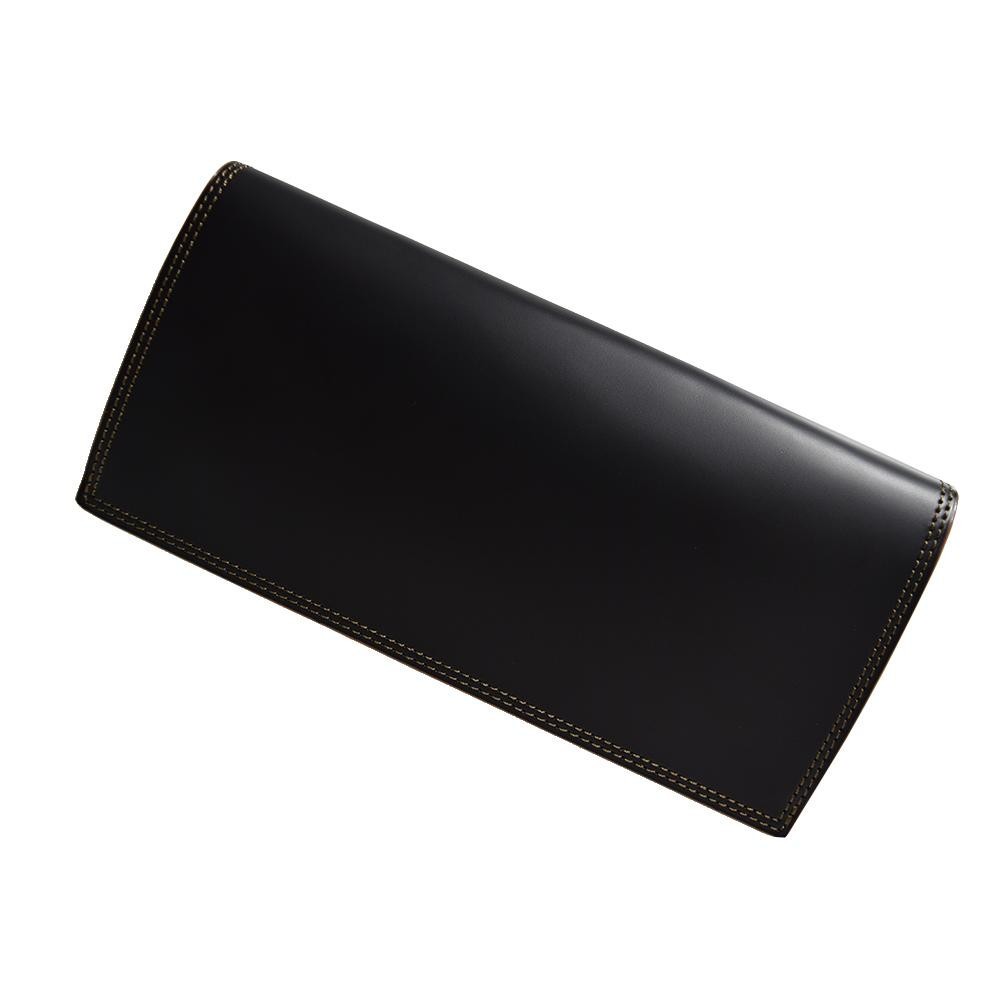 強い耐久性を持ち、非常になめらかでしっとりした質感が特徴の「コードバン」を使用した、シンプルなデザインの長財布。カードは10枚収納可能です。小銭入れは付いておりませんので、お手持ちのコインケースなどと合わせてお使いください。 |