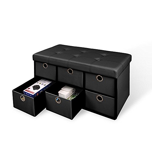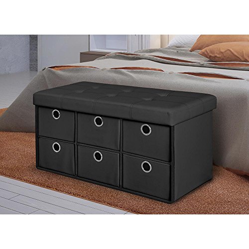 -. Brand : Generic -. Color : Black -. EAN : 0792405380398 -. Feature : Perfect for storage and extra seating / Stylish design with drawers for additional storage / Collapsible design, folds flat when not in use / Adds style and functionality to any room in your home / Maximum weight capacity 250 lbs. Assembled dimension: 29.92 x 14.96 x 14.96"J -. Label : Generic -. Manufacturer : Generic -. Model : 66110 -. ProductGroup : Kitchen -. ProductTypeName : KITCHEN -. Publisher : Generic -. Studio : Generic -. Title : Black Folding Storage Bench with Drawers -. UPC : 792405380398