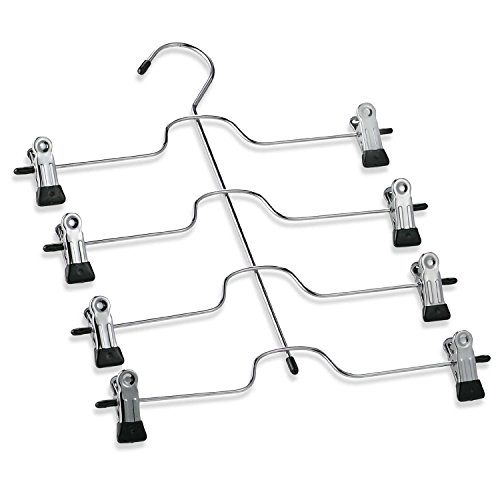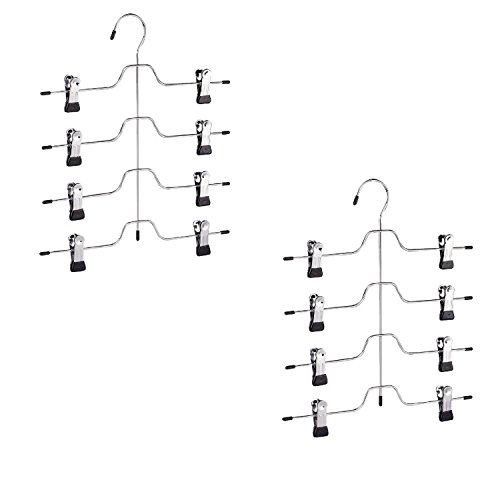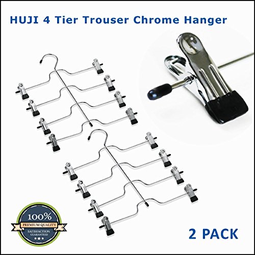 HUJI Sturdy 4 Tier Trouser Skirt Pants Hanger Chrome and Black Vinyl (2, SILVER)
