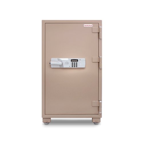 -. Feature : 2 hour 350-degrees Fahrenheit fire rating, tested in temperatures up to 1830-degrees Fahrenheit / 3 story impact rating / Battery operated electronic lock (Batteries included) / Interior key locking drawer / Solid steel construction