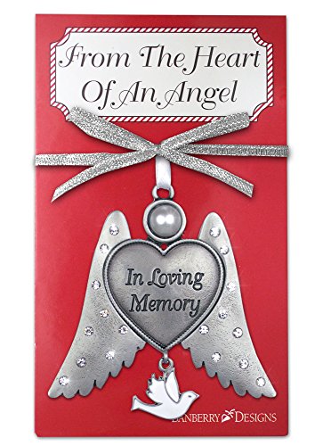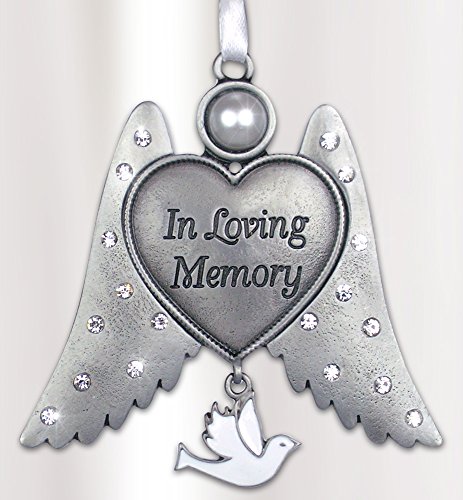Bereavement Sympathy Angel Wings Ornament - In Loving Memory Engraved on Heart - White Hanging Dove Charm