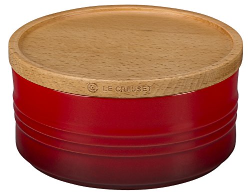 Le Creuset of America 5 1/2" Canister with Wood Lid, 23 oz, Cerise (Cherry Red)