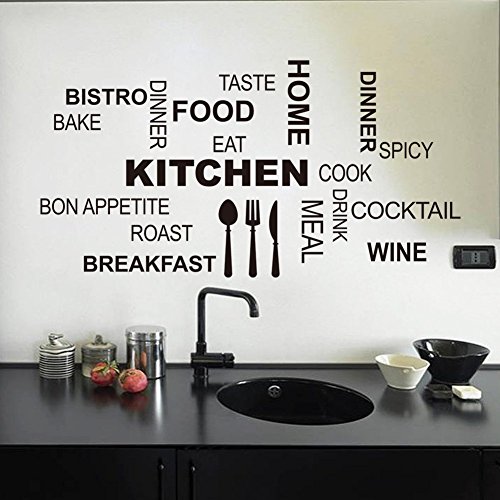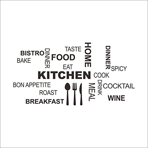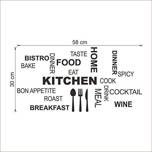 Amaonm Removable Vinyl Creative Saying and Lettering Happy Kitchen Wall Decals Quotes Food Cook Wine Tableware Home Kitchen Room Wall Art Decor Wall Stickers Murals