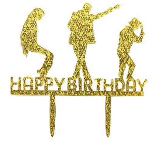 CaJaCa Happy Birthday Gold Cake Topper Michael Jackson Birthday Party (Gold)