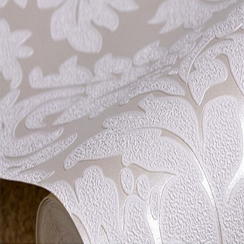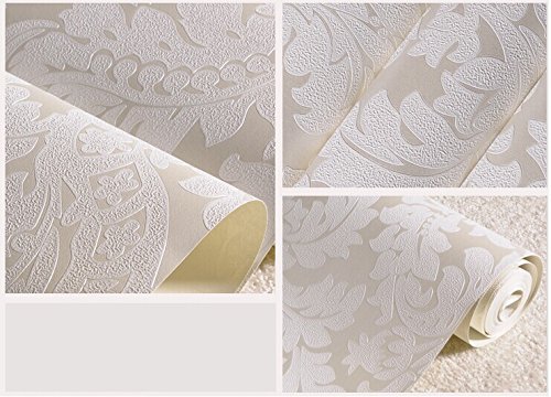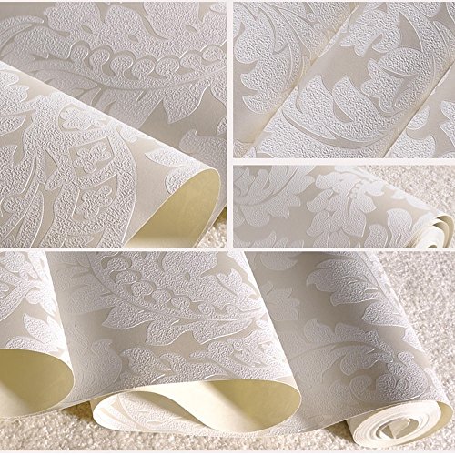 -. Title : QIHANG European Vintage Luxury Damask Wall Paper PVC Embossed Textured Wallpaper Roll Home Decoration Cream-white Color wallpaper 0.53m10m=5.3㎡