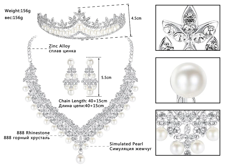 Included Additional Item Description:1pcs necklace + 1 pair earrings + 1pcs Tiara