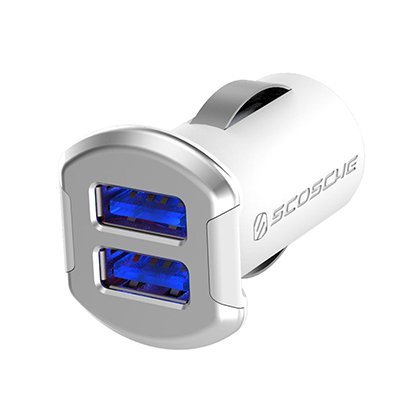 SCOSCHE Dual, Fastest Car Charger for Universal/Smartphone - White/Silver