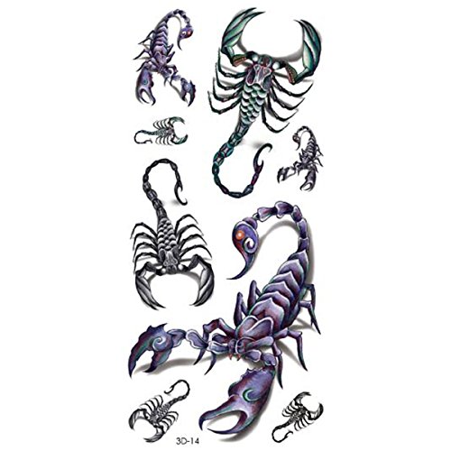 WYUEN 5 Sheets 3D Scorpion Temporary Tattoo Sticker Women Body Art Men Fake Tattoo Paper 19X9cm 3D-14