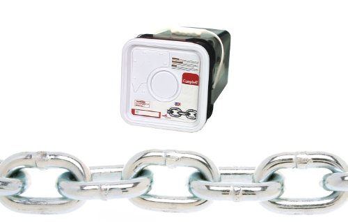 Campbell 0143326 System 3 Grade 30 Low Carbon Steel Proof Coil Chain in Square Pail, Zinc Plated, 3/16" Trade, 0.21" Diameter, 150' Length, 800 lbs Load Capacity