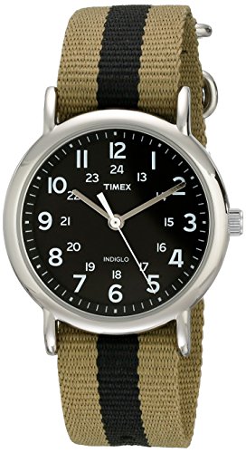 -. Title : Timex Unisex T2P2369J Weekender Silver-Tone Watch with Olive and Black Stripe Nylon Band