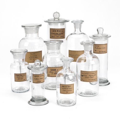 Two's Company Botany Apothecary Jars with Antiqued Labels, Set of 9