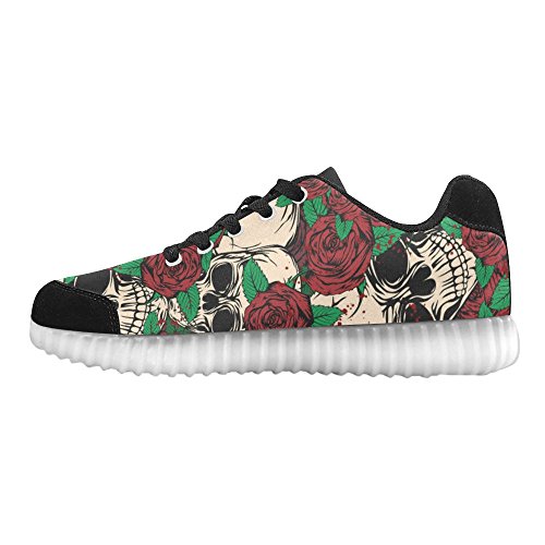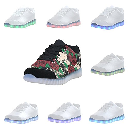 (InterestPrint)/Women's/Athletic Outdoor/DIRECT FROM USA/InterestPrint skulls and roses Light Up Shoes Flashing Sneakers Casual Flat Shoes for Women