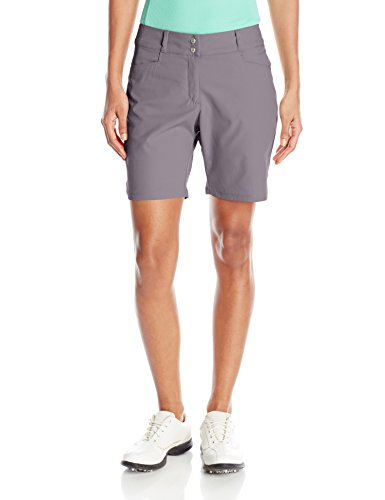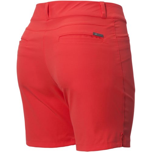 -. Feature : Stretch-woven, pull-on Bermuda for sleek silhouette / Slim fit for athletic movement / Power mesh at inner waistband for added comfort and flattering fit / brand mark metal tab above the back, right pocket