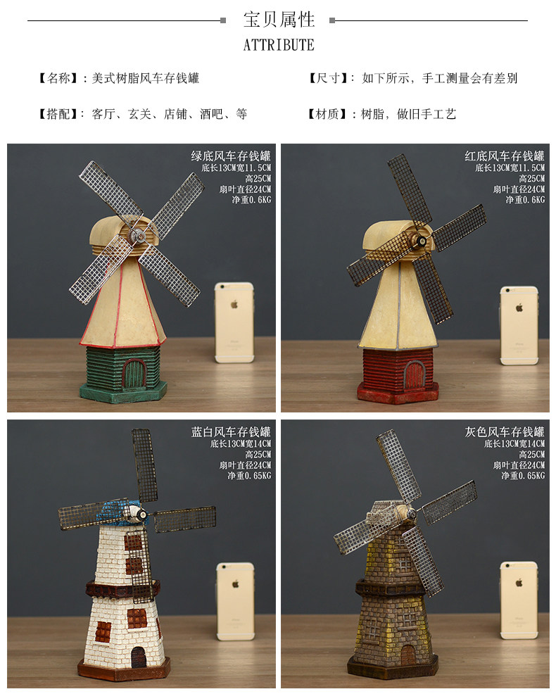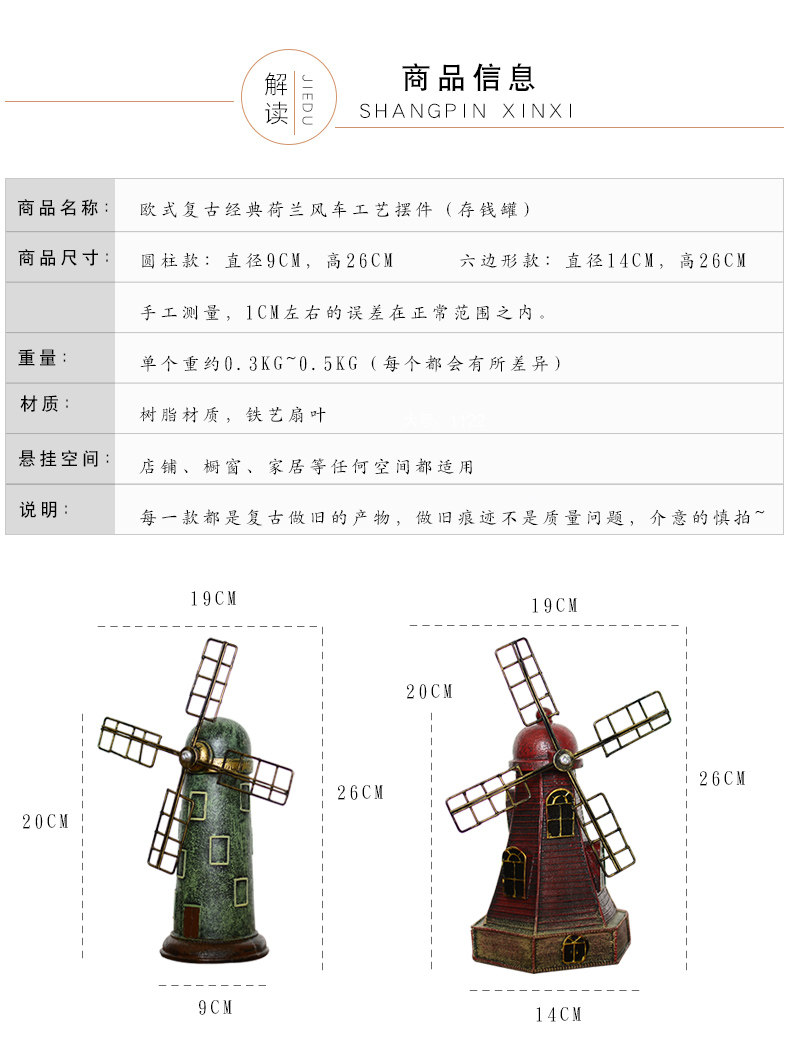 󰄬欧式复古怀旧荷兰风车装饰品摆件创意客厅咖啡厅酒吧店铺工艺摆设