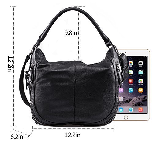 -. Feature : Italian Full Grain Calf Skin: Italian Genuine in Washed Leather with Cotton Lining, Which Brings Comfortable Feeling and Wear-Resistant.The More Luster,The Longer Using. The Shoulder Bags is Great for Everyday Use and Short Trips / Multifunctional Shoulder Strap: A Short Shoulder Strap (Yes! - Its Super Comfortable!) And A Long Fully Adjustable Strap that Can Be Worn on the Shoulder or Cross Body.Perfect for Casual Use, Work Place, Traveler, Business / Various Pocket: With A Big Inner Compartment,1 Interior zipper slot pocket for keys and wallet,1 phone pocket, 2 credit pocket and 1 Zippered Pocket in the Back.Perfect As your everyday bag, you can carry all your necessities: 14" in Laptop, IPAD Air,Iphone6 plus,A4 file, wallets, key, makeups,ID card,your phone, Key pocket, Makeups ect / Features:Optional Adjustable Crossbody Strap: 23-1/4" to 26"L drop,let your Hands Free When Dating, Shopping, Working or Traveling / Product Dimensions:17"(W)x13.4"(H)x2"(D)
