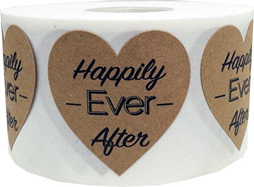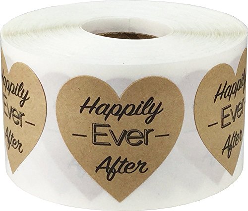 InStockLabels Happily Ever After Heart Shaped Stickers 1 1/2 Inch 500 Adhesive Stickers, Natural Kraft