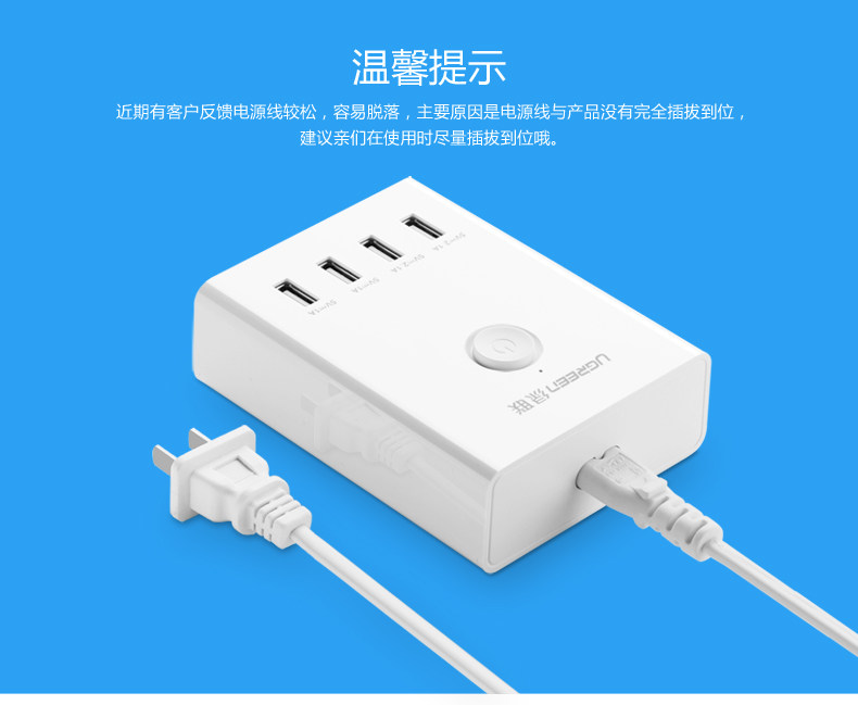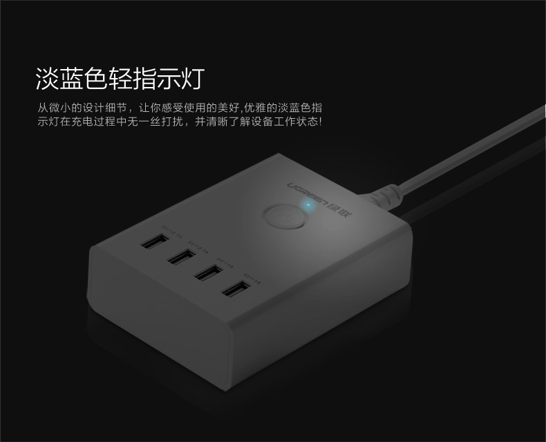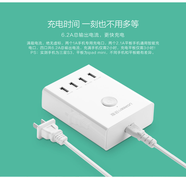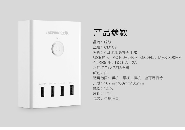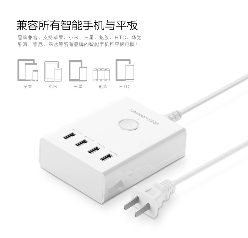 绿联4口USB充电器多接口2a快充安卓苹果手机平板电脑通用充电器头