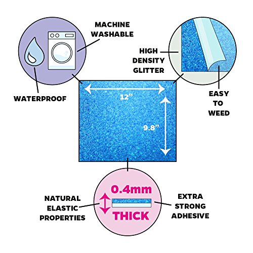 ⚡ 15 SHEETS OF THE MOST POPULAR HTV GLITTER COLORS – 12” x 9.8” sheets engineered to apply perfectly by Iron On or Heat Press on the widest range of fabrics – including t-shirts, sweaters, bags, kids and baby wear