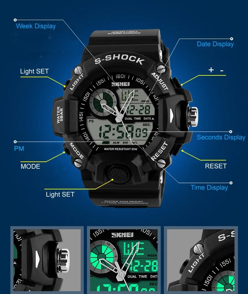 Skmei Watch:Men Dual Time Man Sports Watches