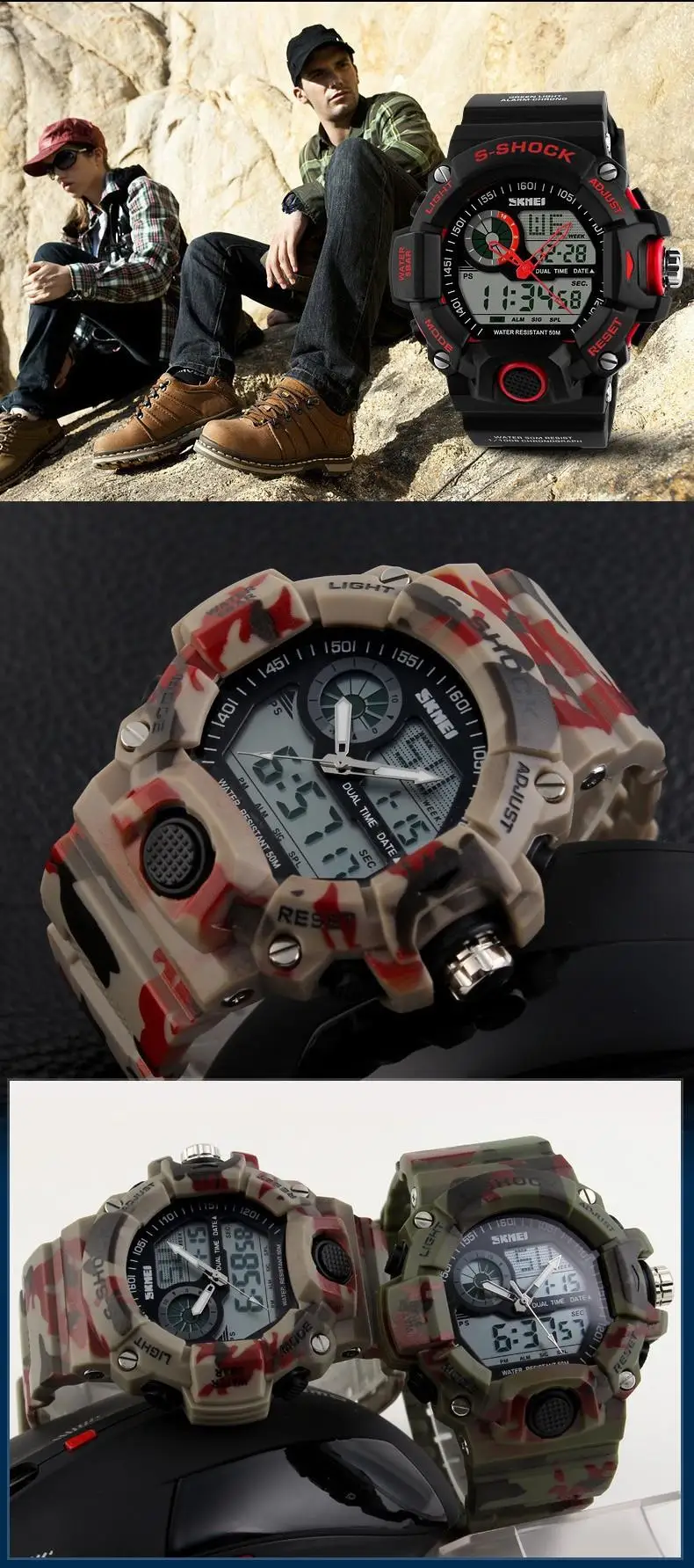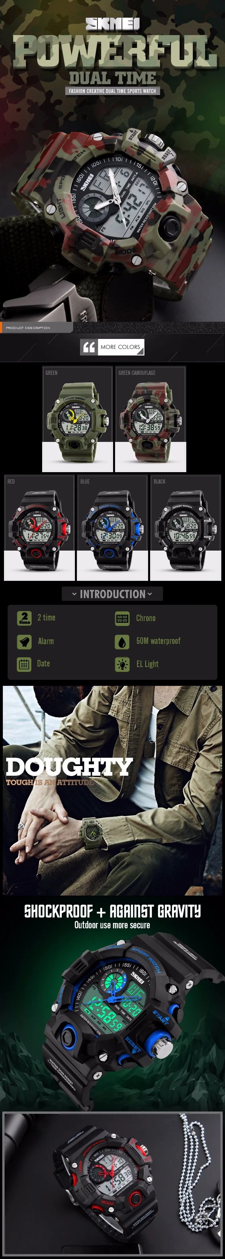 camo watch:Wristwatches, Skmei sports watches, Military Watch, LED watch