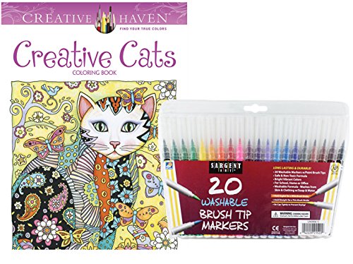 Bundle of 2 includes Sargent Art Washable Firm Brush Tip Markers in a Case, Set of 20 and Dover Adult Coloring Book, Creative Cats by Marjorie Sarnat: Stress Relieving Designs to Relax and Enjoy! Specifically Designed For Experienced Colorists. Creative Haven Coloring Books Offer an Escape to a World of Inspiration and Artistic Fulfillment.Feature