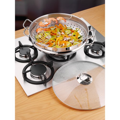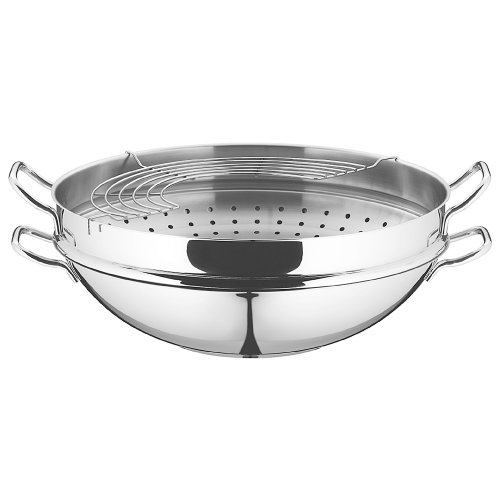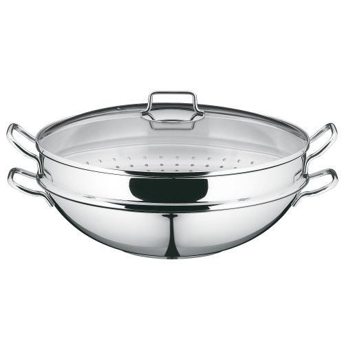 -. Feature : Inhalt: 1x Wok-Pfanne, 1x Glasdeckel, 1x Ablagegitter, 1x Dämpfereinsatz mit Rezeptheft / 4-teilig / Material: Cromargan® Edelstahl Rostfrei 18/10, poliert / Guetesiegel: TransTherm®-Allherdboden (auch Induktion) / Größe: ø 36 cm,