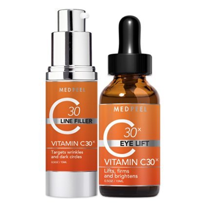 -. Binding : Health and Beauty -. Brand : Medpeel -. EAN : 8526816806718 -. Feature : HYDRATE AND TIGHTEN with Vitamin C, pomegranate and rosehip complex + vitamin complex to keep your eyes looking fresh and young / VITAMIN C SERUM helps to improve skin tone, minimize fine lines around the eyes, and get rid of dark spots / LINE FILLER helps to keep your skin hydrated and promote elasticity in your delicate eye area / SAFE FOR ALL SKIN TYPES AND TONES Use the Vitamin C30X Eye Lift Kit with confidence - it's formulated to be safe to use for everyone / NO ANIMAL TESTING & PARABEN-FREE We proudly manufacture our products in the USA and do not test on animals -. IsAdultProduct : 0 -. Label : Kira Labs -. Manufacturer : Kira Labs -. Model : VC30X-ELK -. MPN : VC30X-ELK -. NumberOfItems : 1 -. PackageQuantity : 1 -. PartNumber : VC30X-ELK -. ProductGroup : Beauty -. ProductTypeName : BEAUTY -. PublicationDate : 2016-08-20 -. Publisher : Kira Labs -. ReleaseDate : 2016-08-17 -. Studio : Kira Labs -. Title : Medpeel Vitamin C30x Eye Lift Kit, 0.5 Fluid Ounce