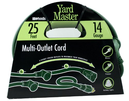 Yard Master 3030 3-Outlet Garden Extension Cord with Evenly-Spaced Plugs, 25-Foot, Green