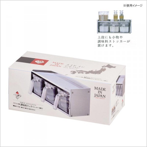 日本製の調味料ラック。ストッカー付きで便利です。