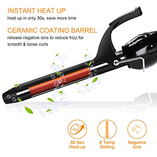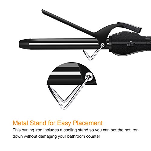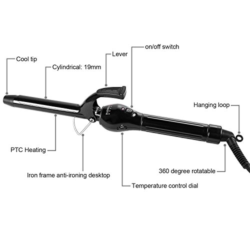 The styler has on/off buttons and an on indicator light. Has a heat protective glove, tangle free swivel cord, a cool tip, so you can prevent burns. The most advanced professional styling tool ever. The tourmaline ceramic technology helps create shinier curls. The ceramic tourmaline barrel generates constant and even heat to create long-lasting, shiny curls. Digital Diamond Ceramic is a versatile 19mm curling iron. If it's gorgeous, straight or curly hair you or your customer prefer, you will be rewarded with a look that lasts all-day long without the need for chemicals to finish the job. The thin and light weight design fits in your hand comfortably, making the styling fun and easy. For All Hairstyles & Types Whether you sport a fine,normal or thick hairstyle, feel free to style it up with the ringlets you've always wanted. The curl ironing's wand is finely proportionate in order to turn long / short locks into either voluminous waves or tighter curls depending on the look you want. Frizz-Free Curls in Less Time The tourmaline ceramic coating releases negative ions that neutralize the positive charge of the hair in order to minimize frizz and hair damage. The PTC (Positive Temperature Coefficient) stones to the core of the wand heat up to 410 ℉ in only 60 seconds. Safe Build The wand comes with an insulated tip and included heat resistant glove to avoid scalding, while the stainless steel support lets you safely lay it on a surface to cool down. Should you forget the device on, the built-in safeguard will turn it automatically off after 60 minutes. Two Ways to Curl First Method: 1. Widen the clip and place the middle length of the lock in between the clip and the wand 2. Wrap the lock around the wand and close the clip Second Method: 1. Widen the clip and place the end of the lock in between the clip and the wand 2. Close the clip and wrap the length of lock around the wandFeature