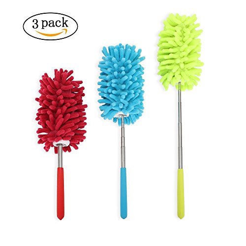 -. Feature : Extendable And Long Life To Use: collapses back to 10 inches, you can place on any small drawers. Measures 29 inches fully extended, appropriate length can be adjusted to facilitate cleaning. Stainless Steel telescopic pole, does not easily break and rust, the brush head part is washable can be disassembled to clean and re-use easily. / Good Design Features : Adopt soft plastic anti-slippery handle design can help you save effort to do clean. Better yet, with an anti-static and non-scratchy design will let you enjoy cleaning. / Excellent dust removing effect: Microfiber technology means millions of tiny fibers can traps dust, wipe the surfaces not to be damaged.Design of cylinder will better to clear the sanitation dead corner. / Wide range of use:Duster is suitable for cleaning the dust in the car, Computer, air conditioning, TV and other household appliances dust, cleaning the dust from the sofa, table, cabinet, etc. / This duster set includes three retractable brushes in blue,yellow and red.(pack of 3 items)