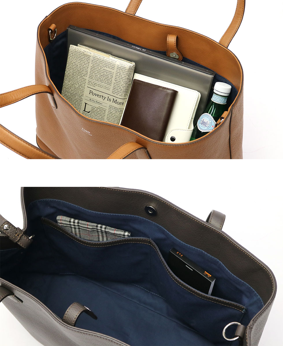 Using leather charm with softness and elegant look, simple tote bag that you can bring anywhere regardless of gender Tote bag. The expression which deflects softly when it is shawled, can fully enjoy the texture of leather.
