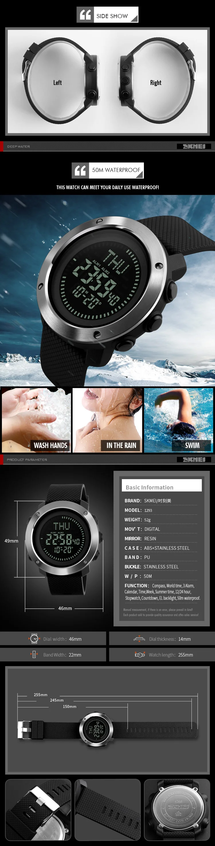Feature:Back Light,Alarm,Water Resistant,Multiple Time Zone,Chronograph,Week Display,Compass,Repeater,Shock Resistant,Stop Watch,Complete Calendar,Swim,Auto Date,LED display,Diver