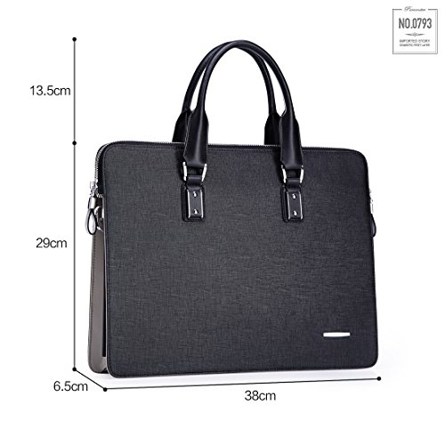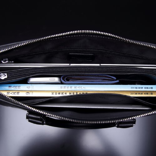-. Feature : Material: Genuine Leather / Structure: Top zipper closure, interior was separated into 2 main section by a zipper pocket, inner oneside with a serect zipper pocket, one cellphone and purse holder, one iPad pocket. The 4A magazine can be put in. It can hold 14" laptops or less. This bag is so wonderful for business use. / Stylish handbag, can be used as both mens & womens briefcase, with stylish out-looking and gentle style / This briefcase is design for men, and it's also perfect for women