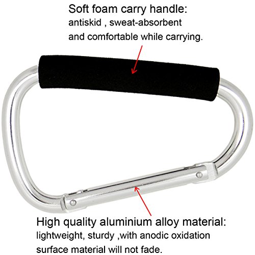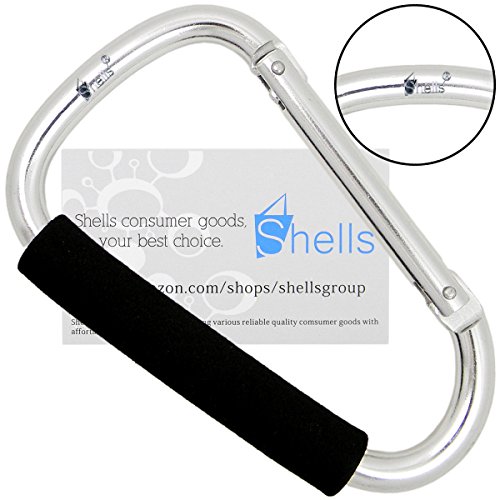 Shells Silver Color Extra-large D-Shape Super-handy Snap Hook Hanger Bags Holder Carrier Mommy Hook Carry Handle With Soft Foam Grip