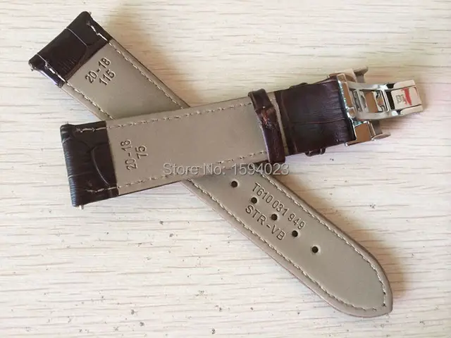 | [해외] 20 미리메터 (Buckle18mm) T063639 T063617 높은 품질 실버 나비 버클 + T063610 브라운 정품 가죽 시계 밴드 스트랩 남성 |