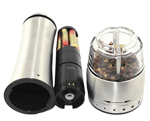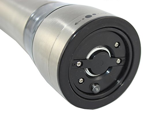 - ELECTRIC,CONVENIENT AND UPGRATED - Simply put batteries and press "ON",then it works! Low noise and big force to quickly prepare fresh peper or salt flour.Your friends will envy you for your new modern kitchen solution in modern design,brushed-satin stainless style.Mills are safely packed in an ELEGANT BOX, more suitable for a lovely gift. Click the buy button now and buy with confidence!Pls note:Due to shipping restriction,batteries are NOT included.