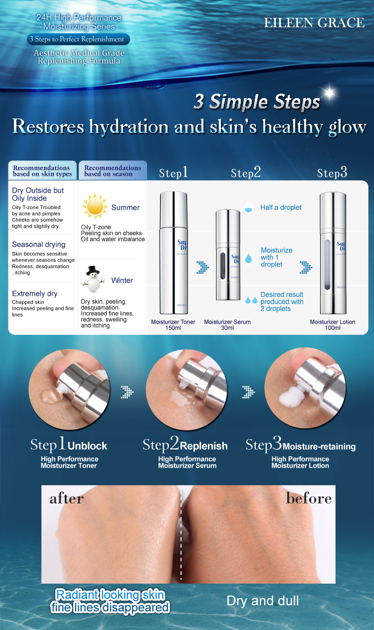 Dry skin due to lack of moisture cause dry fine lines, accelerated aging, serious water shortages and skin appears dull.
