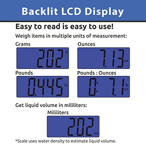 - SIMPLE & CONVENIENT: Weighing foods and small items should be hassle free, so we have implemented smart features like Auto-Off (battery saving), Tare Function (zeroing for net weight), Units Conversion (grams, ounces, pounds, pounds: ounces and milliliters), and even a Low Battery Indicator to simply its use.