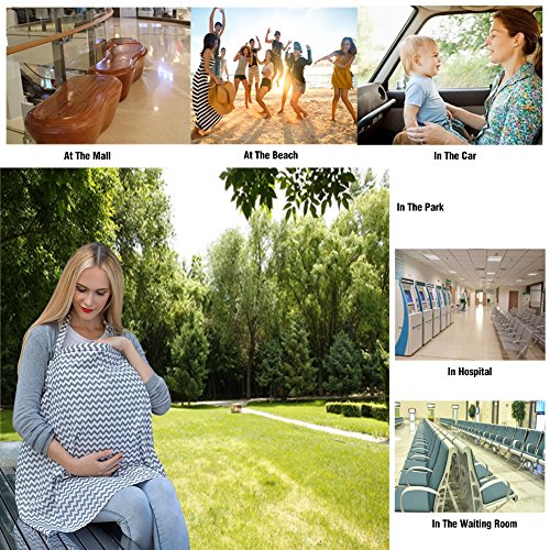 -. Feature : Made of high quality 100% Cotton. About 39.37 in(100cm) width 28.35 in(72cm) height, it is enough large to protect Mam and Baby. / Nursing towel gauze cloth Angle pocket and the original cloth bag, gauze for baby wipe your mouth can hold small items at the same time. / Design USES high-grade fashion D shape adjustment lace-up, a more reasonable adjust the height of degrees., one that goes under your arm and around your back and another that goes above your arm around your neck. easily adjusted and comfortable to wear to set free your hands. / It also has a bendable area at the top in the middle that allows you to see under cover. Perfectly loops out at the top make you can see baby but they aren't covered tightly. / Fashion design and Multi-use! It can be used as a nursing cover, a blanket, or even a sunshade to protect baby skin from harmful UV rays. As the baby grows up and feeding no longer needed, Nursing Towel will start its new life as your apron at home!