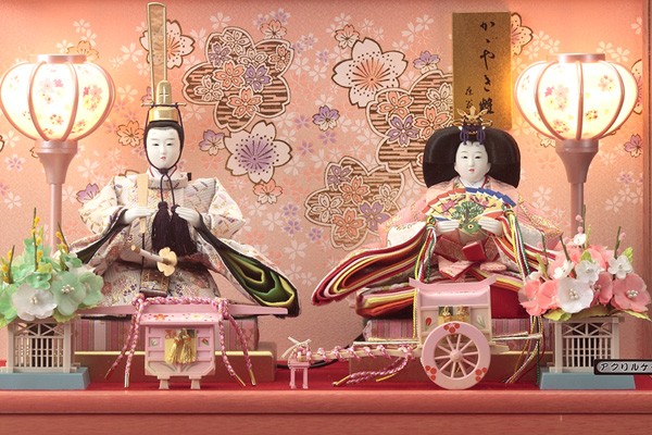 ・親御様、お子様、縁者様の健康と発展を願いながら職人が丁寧に仕上げた雛人形飾り/雛人形が初節句のお祝いにはなを添えます。