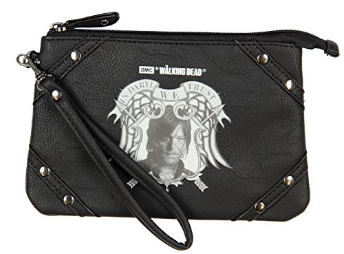 OFFICIALLY LICENSED BASED ON THE FAMOUS TV SERIES, Not a cheap reproduction. All of our Merchandise is sold by companies located in USA. AMC THE WALKING DEAD In Daryl We Trust Womens Black Mini Clutch Soft And Light Weight Faux Leather Front Print Zipper Closure Main Compartment Measures 8" x 5" x 1"Feature