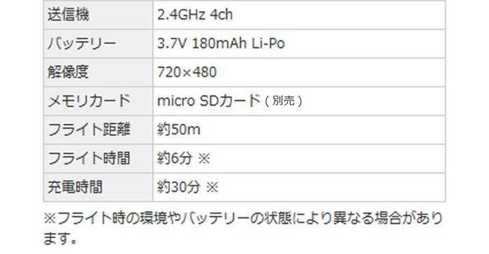 ※本商品はバッテリーを含む本体重量が200g未満の為、改正航空法の適用外の商品です。