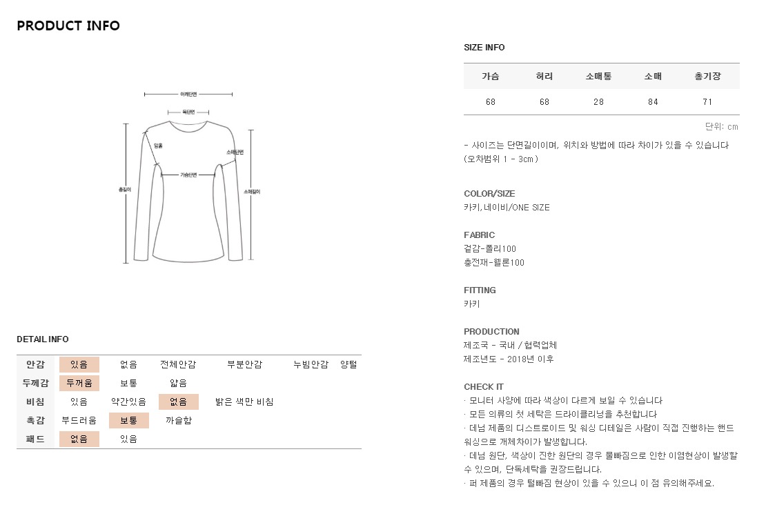 *모든 의류의 첫세탁은 드라이크리닝을 권장해드립니다*